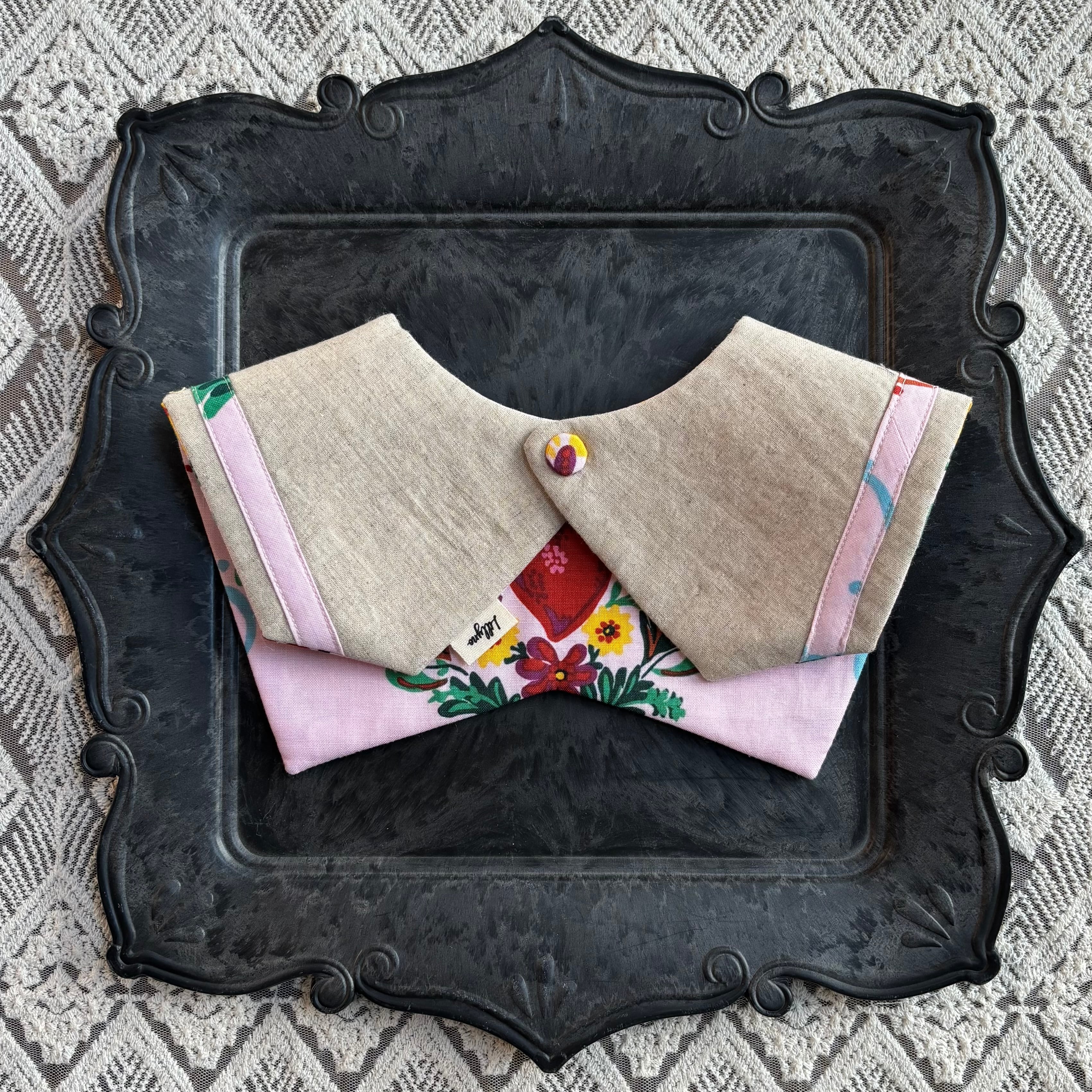 表面はコットン生地、裏面はハーフリネンをしようしておりしっかりとした作りで、安心してご使用いただけます。セーラー型のアクセントが可愛らしさを引き立て、特別なお出かけにも最適です。